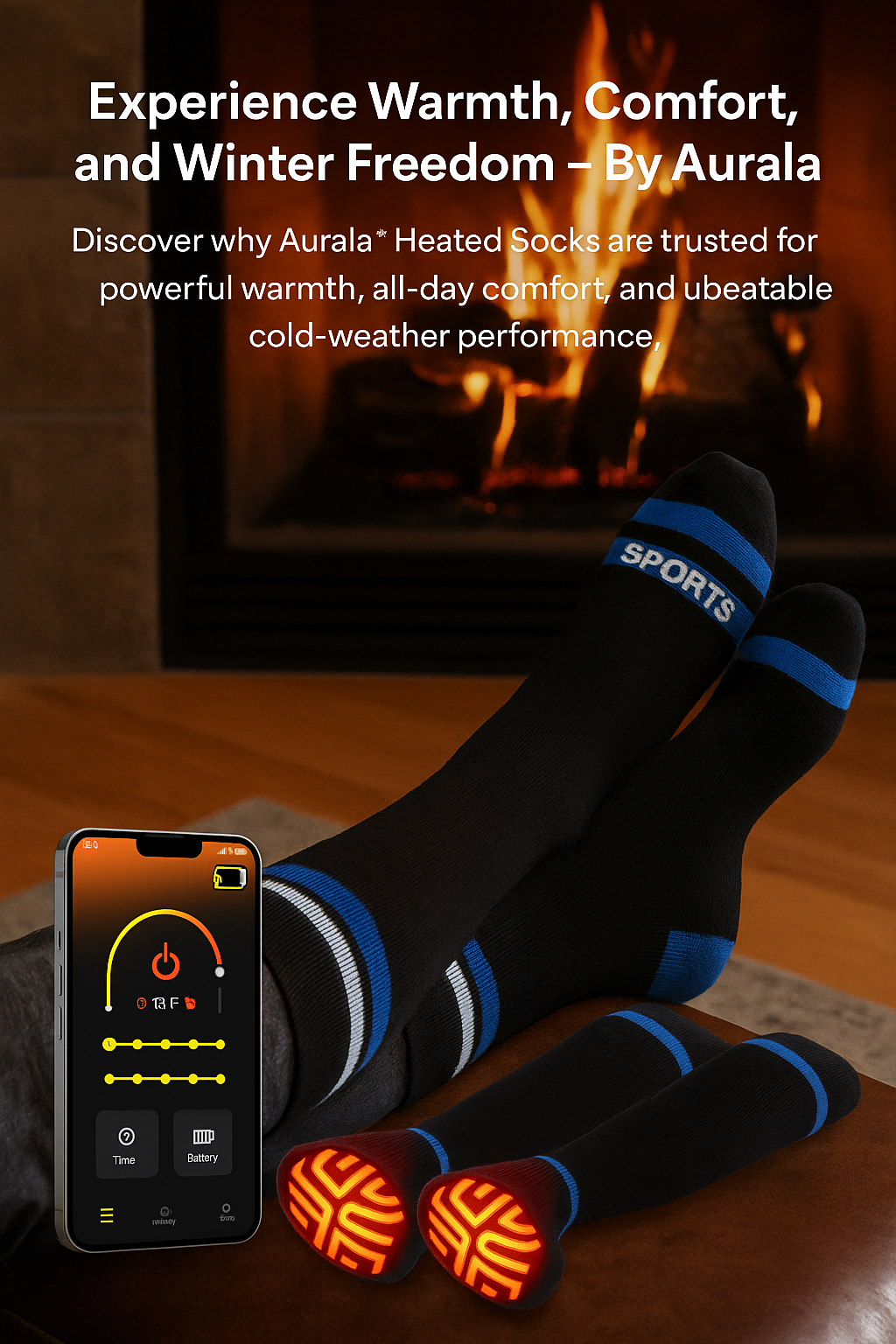 Aurala™ Heated Socks deliver powerful toe-to-sole warmth, long-lasting batteries, and unbeatable comfort for your cold-weather days.